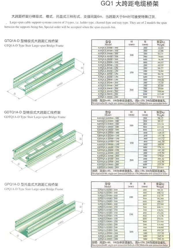 阻燃玻璃橋架分梯級式、槽式、托盤式三種形式。支撐間距6m,當跨距大于6m時可接受特殊定制。