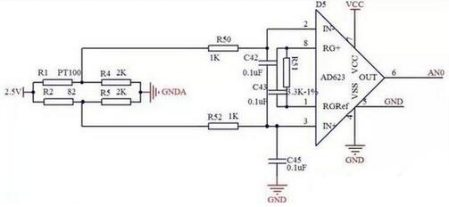 下圖是PT100的信號調(diào)理電路,我在產(chǎn)品上用的,大家可以參考一下。