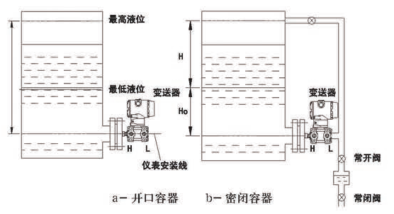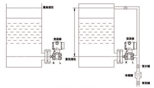差壓式液位變送器測量的液位與實際液位之間存在著一定的偏差。為了使變送器能夠準確測量顯示液位高度,需要對差壓式液位變送器進行遷移處理,包括無遷移、負遷移和正遷移三種情況。而所謂的“遷移”是在量程不變的情況下,將液位變送器的測量范圍進行移動調整。但是需要我們注意的是變送器零點的正、負遷移和零點調整是不一樣的。