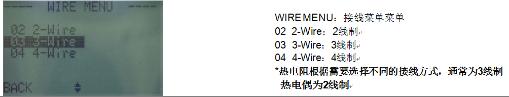 按鈕進入WIRE MENU(接線菜單)子菜單,按