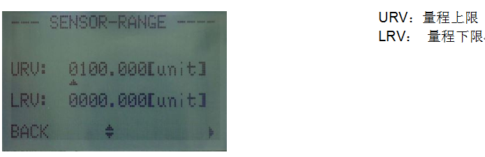 按鈕進入 SENSOR-RANGE(傳感器量程)子菜單,設定傳感器量程。