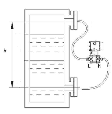 高壓室法蘭與容器高端法蘭相接,低壓室法蘭與容器低端法蘭相接。為避免變送器在測(cè)量過程中出現(xiàn)盲區(qū)應(yīng)滿足下列條件:H1-ρ1≥h2·ρ2