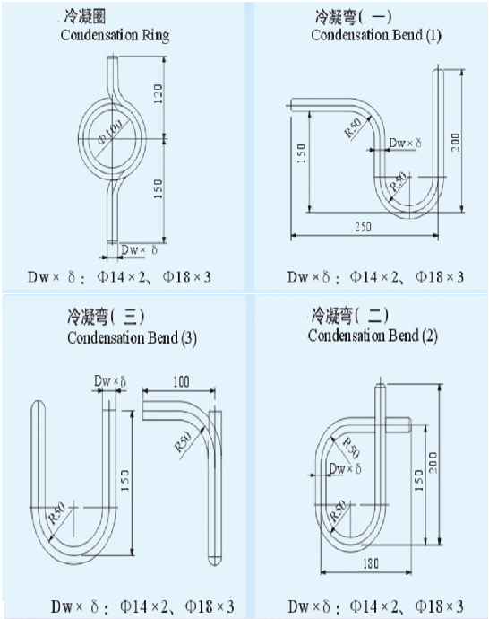 壓力表緩沖管、表彎、冷凝圈、冷凝彎、虹吸管等,是用來連接