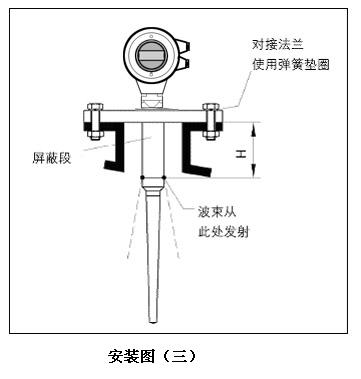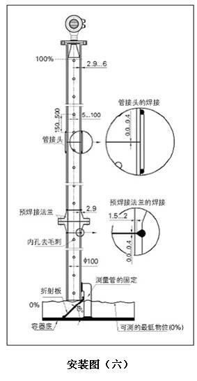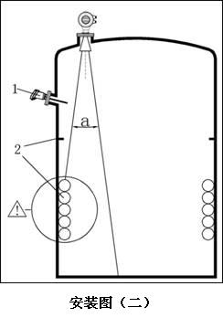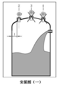 3.如果罐內(nèi)有(1)(2)干涉物件,應(yīng)采用導(dǎo)波管進(jìn)行測量。